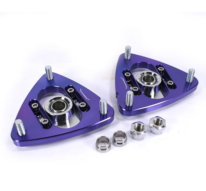 Reliable Functional Design. The Mookeeh Extended Adjustable Camber Plates are designed to prevent unwanted deflection, allowing for precise and consistent camber adjustments. With independent adjustability, you have full control over the camber settings on each side of the vehicle, ensuring an even and balanced setup. The camber plates are conveniently located at the strut tower for easy access and adjustment without the need for specialized tools. Equipped with PTFE lined spherical bearings, these camber plates provide smooth and precise movement, reducing friction and ensuring long-lasting durability.