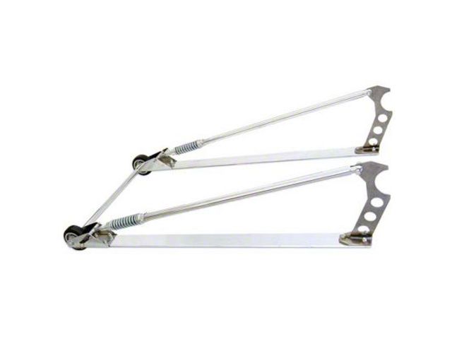 Construction and Appearance. These Wheel-E-Bars feature a polished chrome finish for show-quality looks and long-lasting resistance to wear. The lower spring adjusters are built from ultra-strong 7075-T6 aluminum, while the lower struts are crafted from 6061-T6 aluminum—ensuring a perfect balance of weight savings and strength. The kit also includes axle housing brackets, rubber wheels, and stainless hardware, all designed for high-performance use without unloading the rear tires.