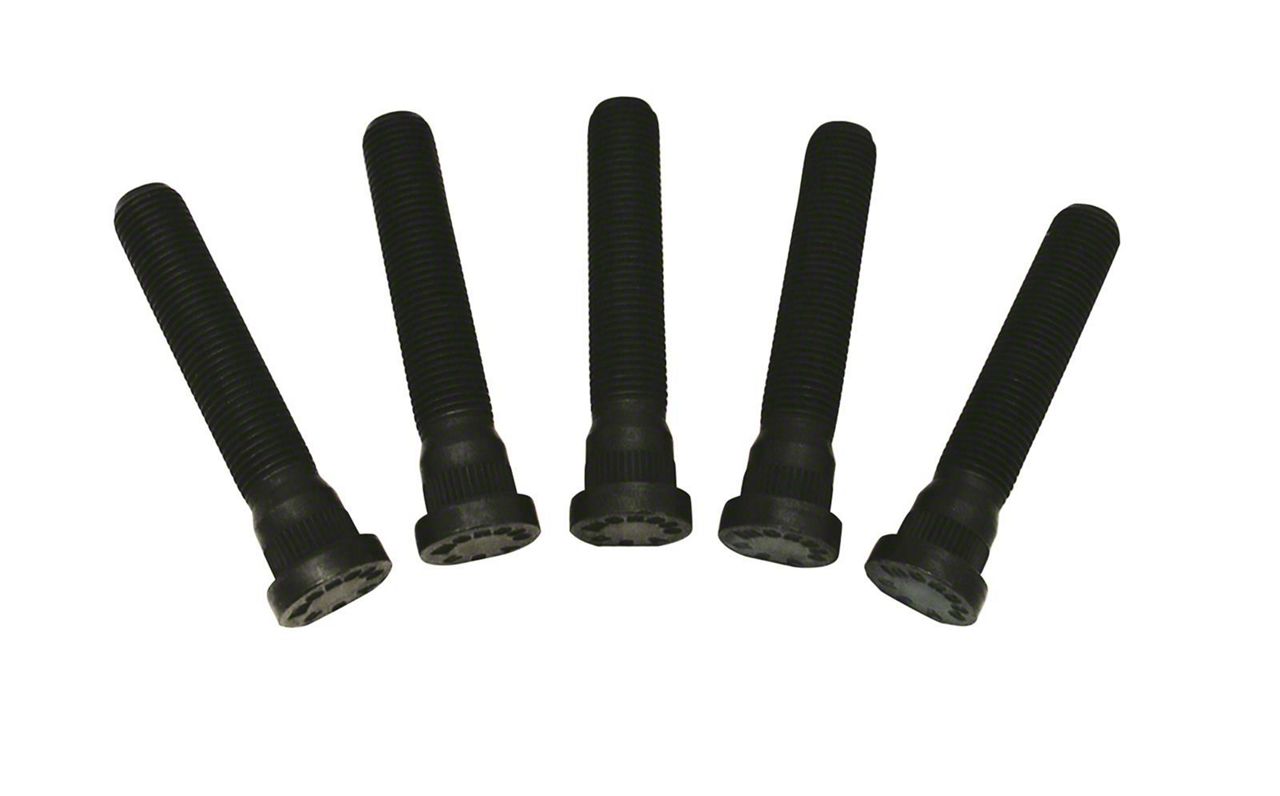 Sets of 5. Made for the Ford Mustang, these Moroso Long Press-In Wheel Studs come in matte black sets of 5. Built from SAE 8740 steel, these M14x1.5 type studs are capable of withstanding 190,000 PSI and are meant for use with thick hub racing wheels needing extra long wheel studs.