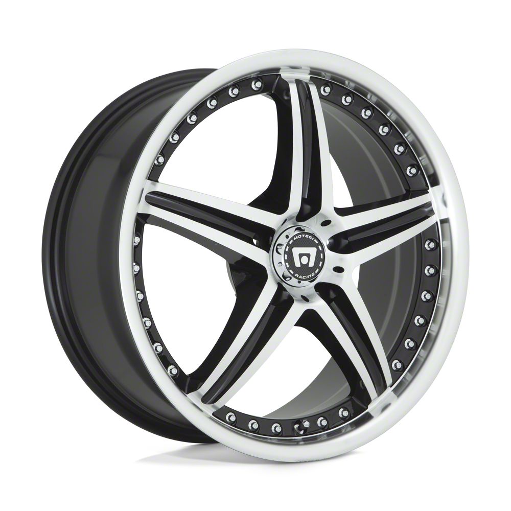 The 16x7 Motegi D5S Gloss Black Machined Wheel is completed in a high-quality gloss black with steel machined accents that will be the envy of everyone. For added looks and protection, this wheel was finished in a durable clear coat.