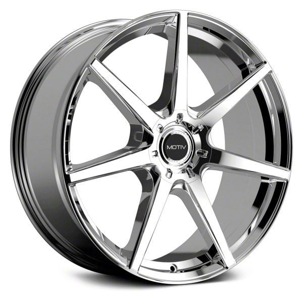 Motiv Rigor Chrome Wheel; 22x9; 40mm Offset offers a striking balance between style and durability. The design speaks to the brand's commitment to quality, enhancing the vehicle's appearance with its distinct look. This wheel, with its unique aesthetics, is ideal for drivers who appreciate a blend of modern design and robust functionality.