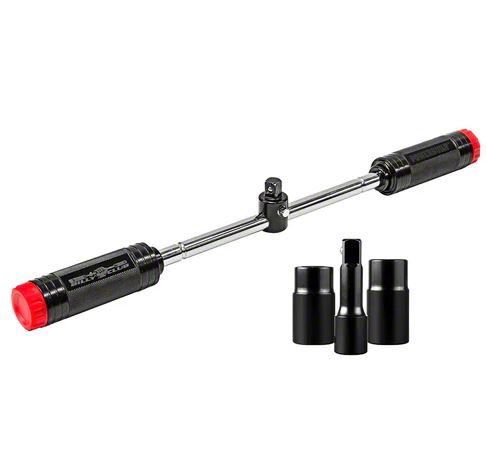 The Powerbuilt Billy Club Universal Lug Wrench makes tire changes faster, easier and safer. The patented design works like an L-Type lug wrench using leverage to break loose stubborn lug nuts. You can then quickly spin off loosened lug nuts by sliding the socket drive head to the center. Reverse the procedure to install a new tire, then get back on the road! Billy Club comes complete with two double-sided lug nut sockets to fit virtually every passenger vehicle on the road today. It also includes a socket extension to help reach lug nuts on deeper dished wheels. And the sockets and extension store in the handles so everything is there when you need it.