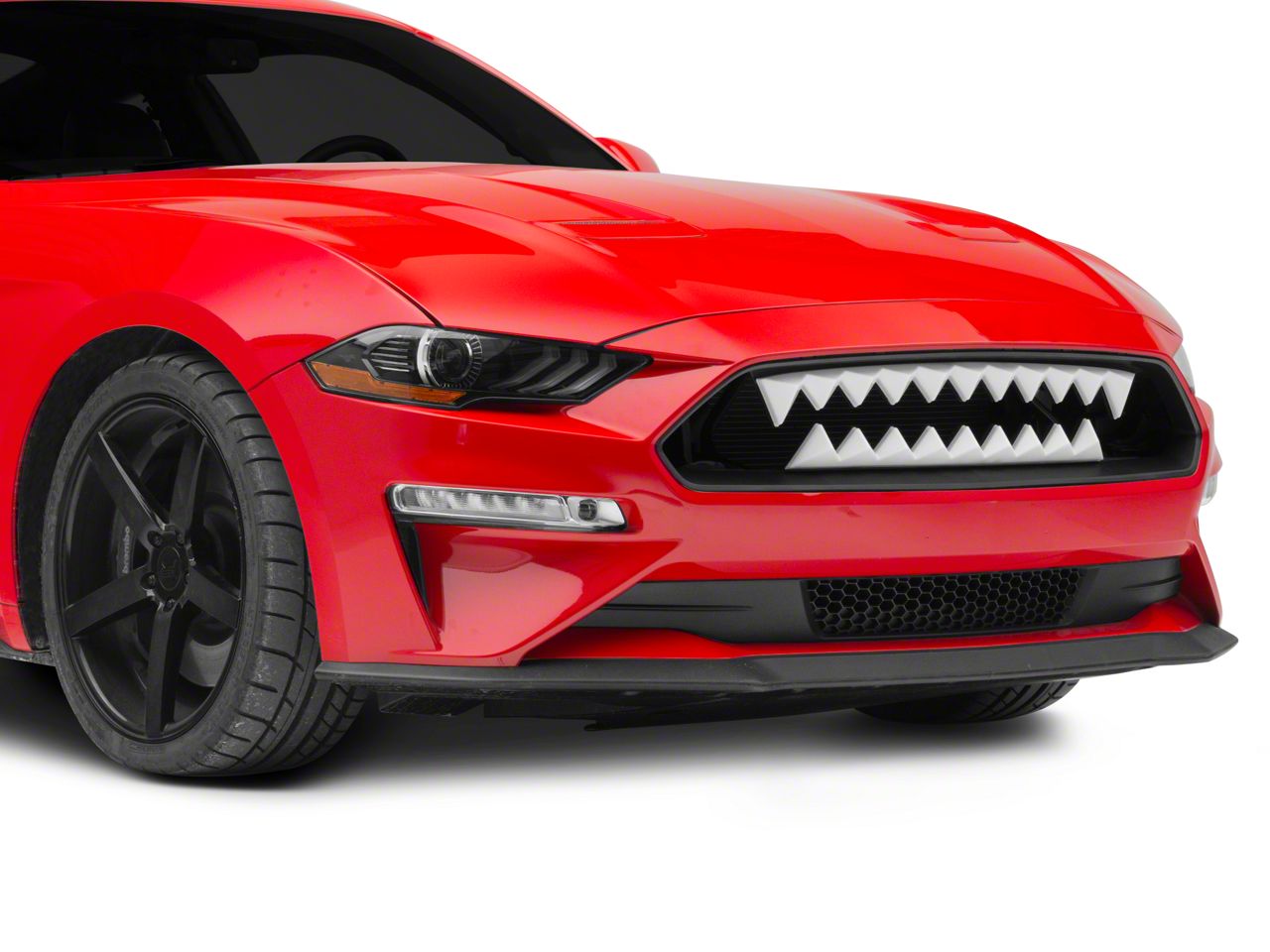 Application. This White Illuminated Shark Bite Grille is designed to fit the 2018-2022 EcoBoost and GT Mustang models with the stock front fascia installed. The LED illumination is intended for off-road use only. Always make sure the grille lights are off before driving.