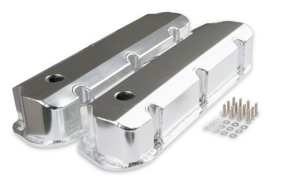 Description. Mr. Gasket's aluminum valve covers are precision die cast for light weight and a perfect fit. Beautifully polished to a high luster, they are sure to enhance the appearance of any engine compartment. They feature an extended sealing lip to positively locate and secure the gasket and stop it from moving to eliminate oil leaks. Available with plain or ball- milled tops and include a 1 1/4 inch diameter breather hole, except where noted. Packaged two per set.