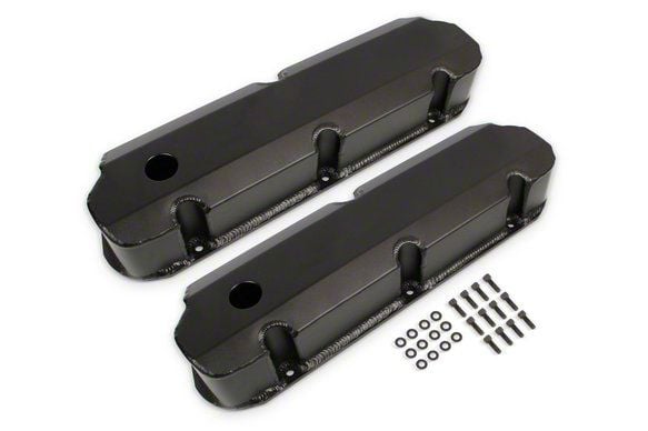 Description. Mr. Gasket's aluminum valve covers are precision die cast for light weight and a perfect fit. Beautifully polished to a high luster, they are sure to enhance the appearance of any engine compartment. They feature an extended sealing lip to positively locate and secure the gasket and stop it from moving to eliminate oil leaks. Available with plain or ball- milled tops and include a 1 1/4 inch diameter breather hole, except where noted. Packaged two per set.