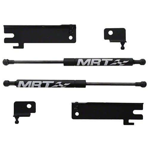 Prop Rod Alternative. The MRT Hood Struts in Black is a superior solution for your vehicle's hood support needs. This pair of hood struts eliminates the need for the OE hood prop rod, providing a convenient and efficient alternative. Their clean and professional look adds a touch of sophistication to your vehicle's appearance.