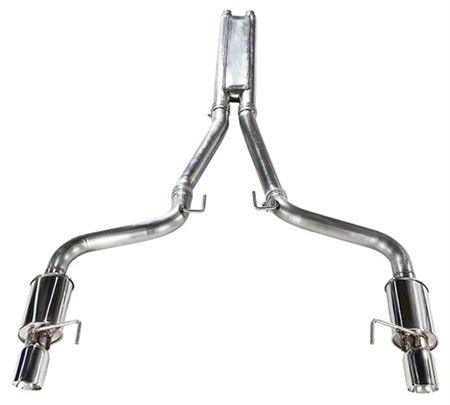 Intimidating Exhaust Tone. Transform your Mustang into an even more intimidating car than before with this MRT Sport Touring DMS Cat-Back Exhaust with Polished Tips. Featuring two high-flow mufflers, an H-pipe, and mandrel-bent tubes, this exhaust system is designed to increase the exhaust flow rate. This results in a head-turning performance sound each time you open the throttle.