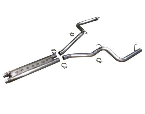 Elevated Power and Torque. This cat-back system is also designed to encourage the faster exit of exhaust gases to optimize combustion cycles, thus elevating power and torque numbers. This is achieved by combining straight-through exhaust plumbing with a muffler-delete configuration. Additionally, by deleting your stock mufflers, this system reduces your ride’s overall weight contributing to better performance.