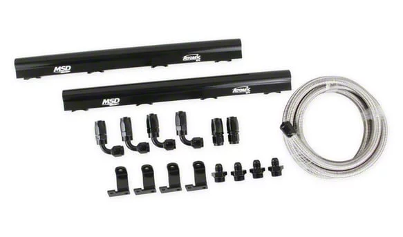 Full Rail Kit. Made for the Chevrolet Corvette C7, this MSD Atomic EFI Billet Fuel Rail Kit comes in a matte black finish. Built as a full fuel rail kit, this includes 4 –6 to 3/4-16 O-ring adapters and have a 5/8-inch diameter fuel passage. Crafted for use with LT1 Atomic Airforce manifolds, this kit also has the required mounting brackets and installation hardware.