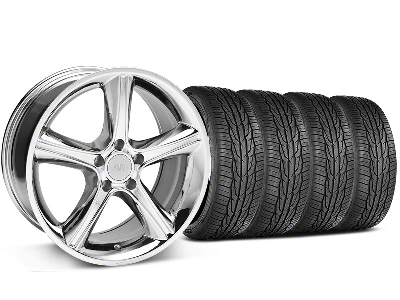 Application. This Standard 18x9 2010 GT Premium Style Chrome Wheel and Toyo Extensa HP II All-Season Tire Combo Kit fits 2005-2014 Standard GT and V6 Mustang models. Does not fit the Shelby GT500, BOSS, Brembo equipped GT, or aftermarket Big Brake Kits.