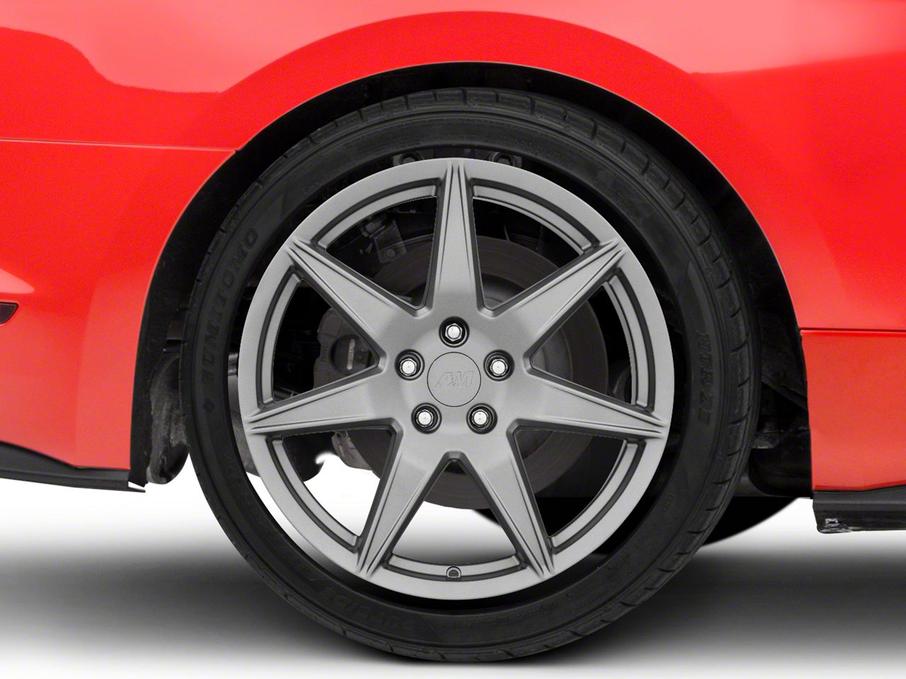 The 19x10 American Muscle Wheels 2020 GT500 Style Charcoal Wheel is completed in a dark charcoal hue that is lighter than the standard "Henry Ford" black, this wheel features a durable matte clear-coated finish for a stealthy appearance that is tough.