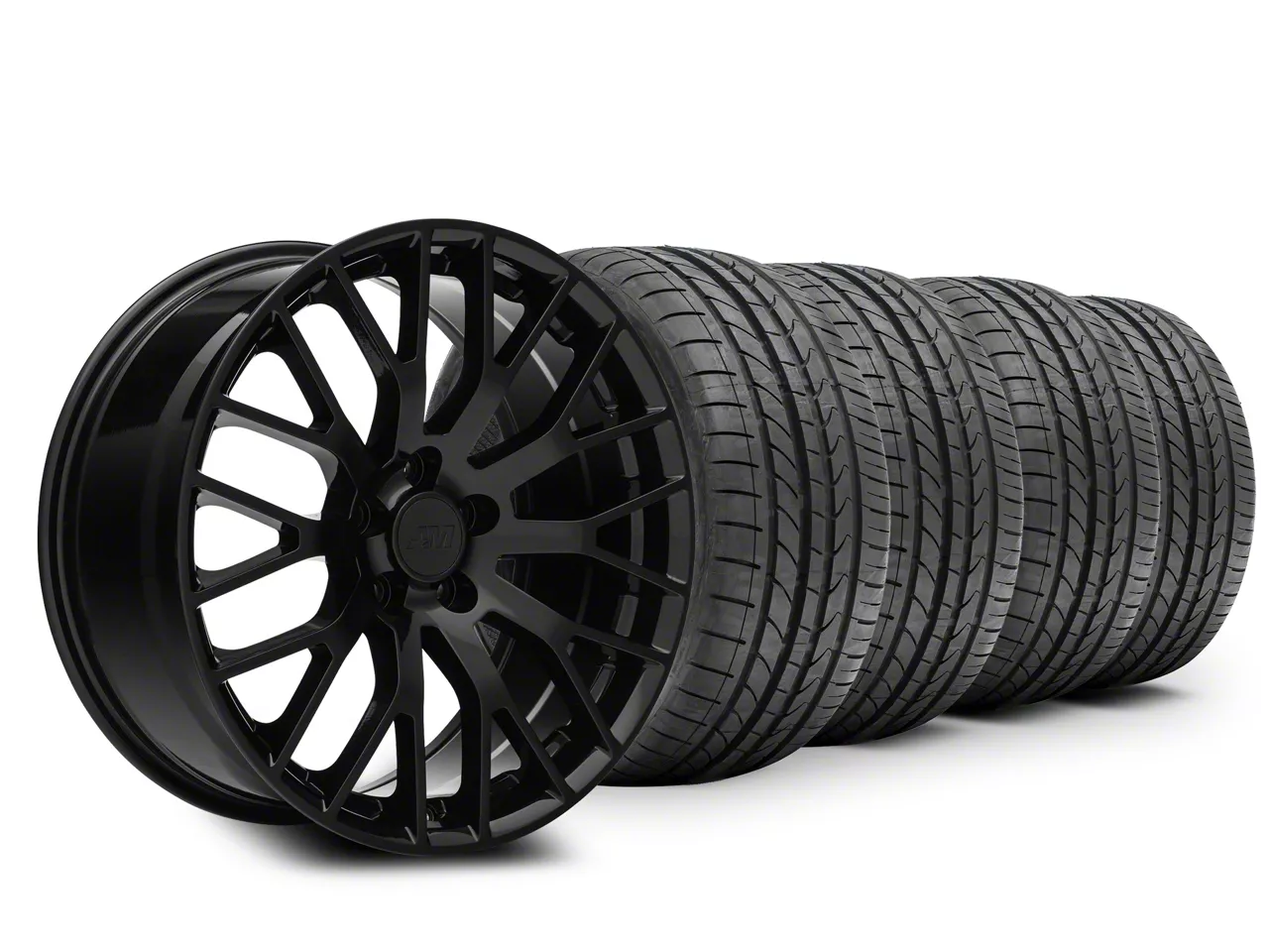 Gloss Black Performance Pack Style Wheel. This Performance Pack Style Replica Wheel features a split multi-spoke mesh design that extends to the outer lip to exaggerate its over all size. This Wheel is completed in a high quality, clear coated, gloss black finish for an aggressive appearance that can withstand the hazards of everyday driving - including road chips and pitting.
