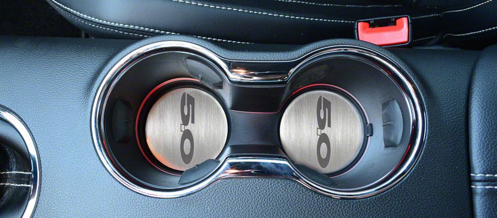 Sleek Styling. Are you looking for new ways to upgrade the interior of your Mustang and give it a modern, racing-style look? Upgrade your Mustang's worn, stained, and sticky cupholders with these two Mustang 5.0 Style Cup Holder Accent Plates. They feature a brushed stainless steel finish with a 5.0 logo that looks fresh and is easy to clean. Use this affordable investment to add serious value and style points to your Mustang.