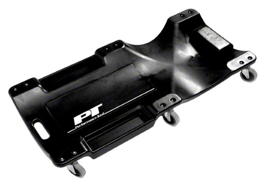 Durability and Comfort. The adjustable headrest, covered in durable vinyl, ensures that you can work in comfort for extended periods. Crafted with a heavy-duty tubular steel frame and a sleek black powder-coated finish, this creeper is built to withstand the rigors of any garage environment. Comfort is taken to the next level with a fully-padded deck and a cushioned headrest, so you can focus on your work without the discomfort of hard surfaces.