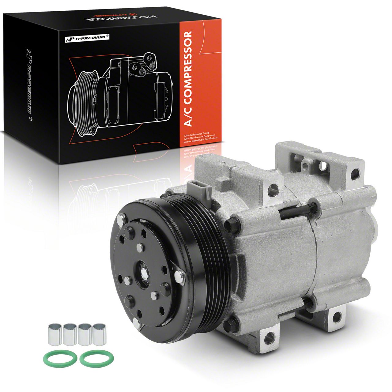 Construction and Appearance. Built from premium-grade materials, the compressor boasts a lightweight yet durable aluminum housing, optimized for strength without adding excessive weight. With a 6-groove serpentine belt pulley, this compressor provides smooth operation, and the sleek aluminum finish adds a modern touch under the hood.