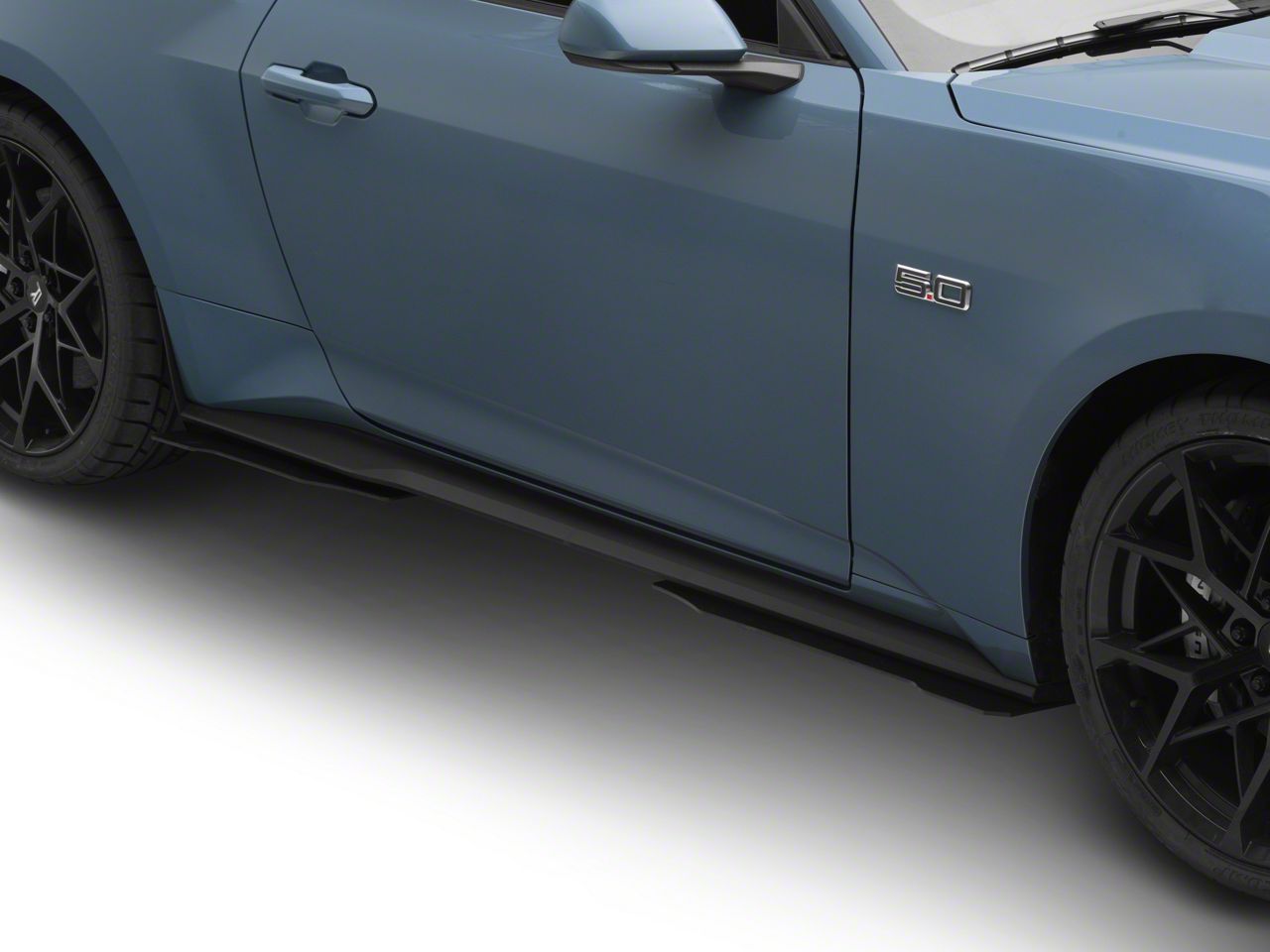 Application. The ABS Side Skirts; Front and Rear; Textured Black is compatible with all 2015-2026 Ford Mustangs, Excluding GT350 and GT500 Models.