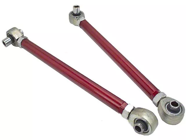 Adjustable Type Control Arms. Whether it's a replacement you are looking for or an upgrade to your Mustang, this Adjustable Rear Lower Control Arms with Spherical Bearings is for you. Designed to significantly improve your driving experience, these Adjustable Control Arms sport spherical bearings instead of rubber bushings, increasing its durability, while overall improving traction, launch, and minimizing wheel hop.