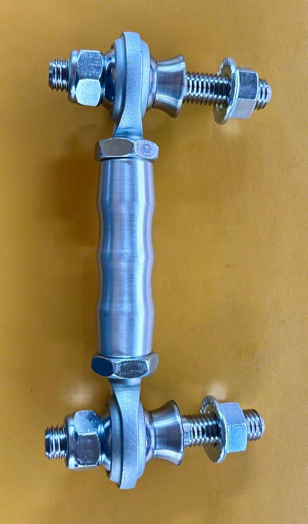 Construction and Appearance. These end links are built with 17-4 pre-hardened stainless steel ball joint studs, forged chromoly Teflon-line heim joints, and fixed spacers to deliver maximum strength and durability. The matte black finish offers a sleek, professional look, while the high-quality construction materials are engineered to withstand the rigors of high-performance driving and daily use. Each component is chosen for its longevity and ability to maintain consistent performance under stress.