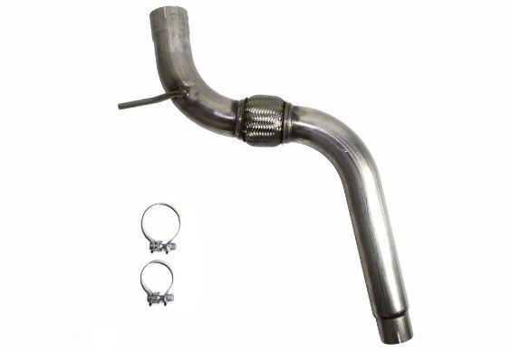 Construction and Appearance. Crafted from mandrel bent 409 series stainless steel tubing, this mid-pipe contributes to durability and corrosion resistance. It features factory style hangers, heavy-duty flanges for a secure seal, and a polished finish that adds a custom look under the vehicle.