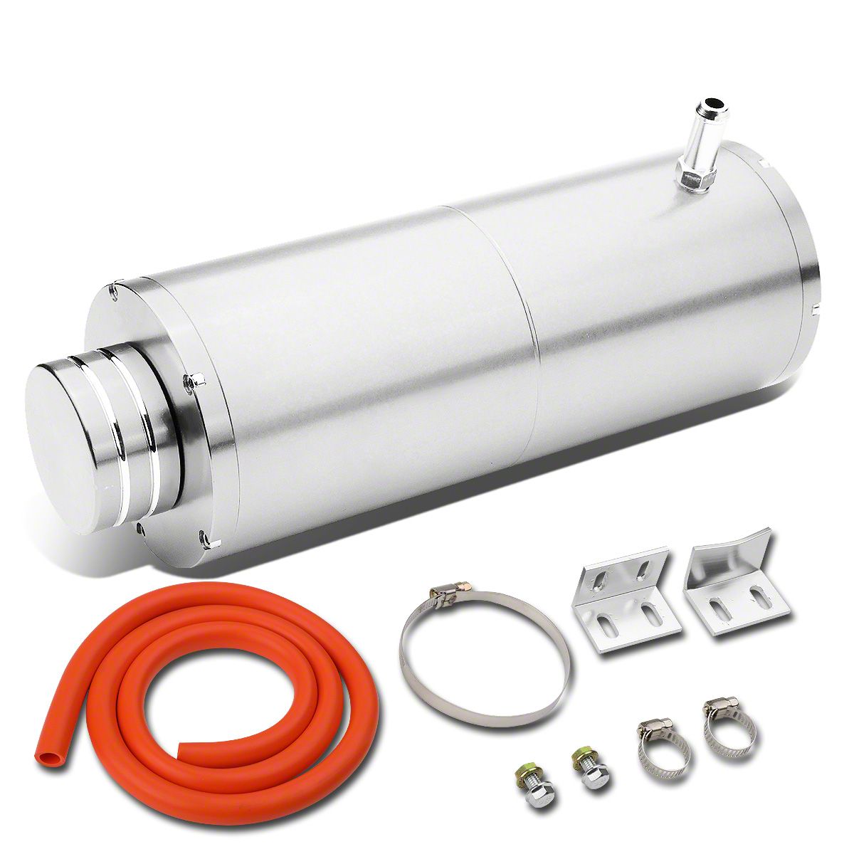 High-Performance Cooling Solution. The Aluminum Coolant Overflow Tank; Silver is engineered to enhance your vehicle’s cooling system by providing a dedicated air space for coolant expansion. This ensures consistent coolant levels and prevents potential overheating issues. Designed for both functionality and aesthetics, this tank helps maintain a cleaner engine bay while improving the reliability of your cooling system.