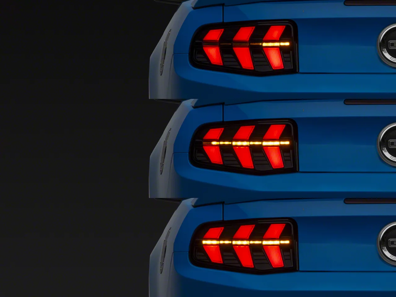 Sporty Appearance. The Amber Sequential LED Tail Lights; Black Housing; Smoked Lens are designed to enhance your Mustang's appearance. The black housing and smoked lens combination creates a modern and aggressive look, making your vehicle stand out. These tail lights feature a sequential turn signal function, adding a unique and eye-catching visual element to your vehicle.
