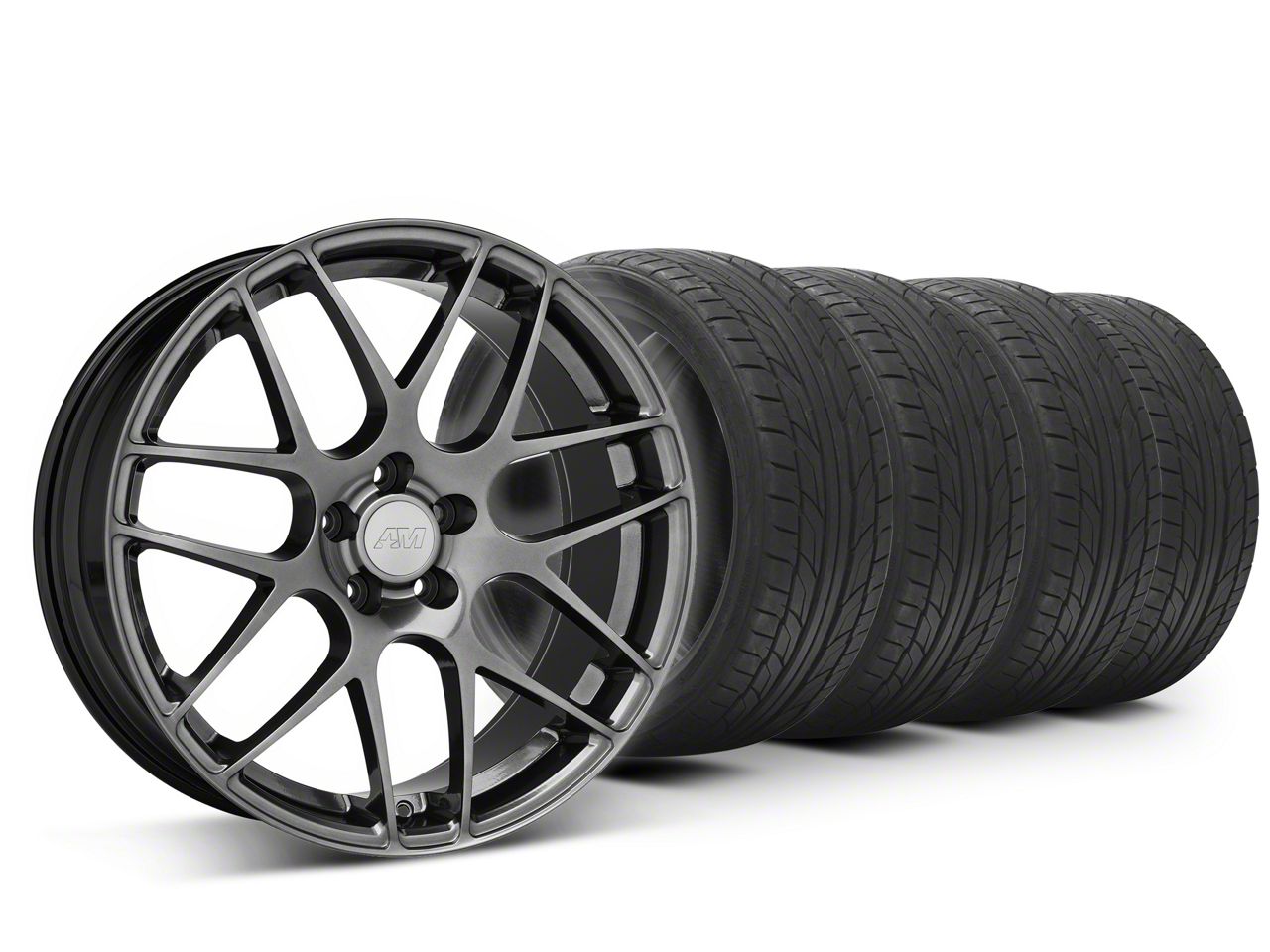 Application. This AMR Dark Stainless; 20x8.5 and NITTO NT555 G2 Summer Ultra High Performance; Set of 4 is designed to fit 2010-2014 Ford Mustang models.