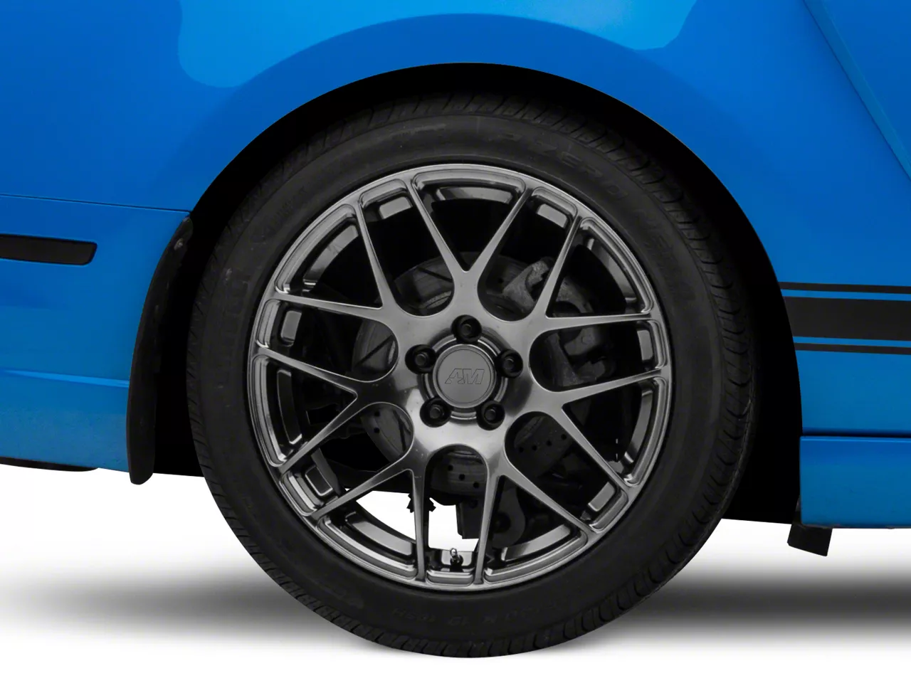 American Muscle Wheels AMR Dark Stainless Wheel; Rear Only; 19x10 exudes an unparalleled aesthetic appeal that perfectly complements a range of vehicle styles. The unique design crafted by American Muscle Wheels not only accentuates the visual appeal but also seamlessly aligns with contemporary vehicle aesthetics.