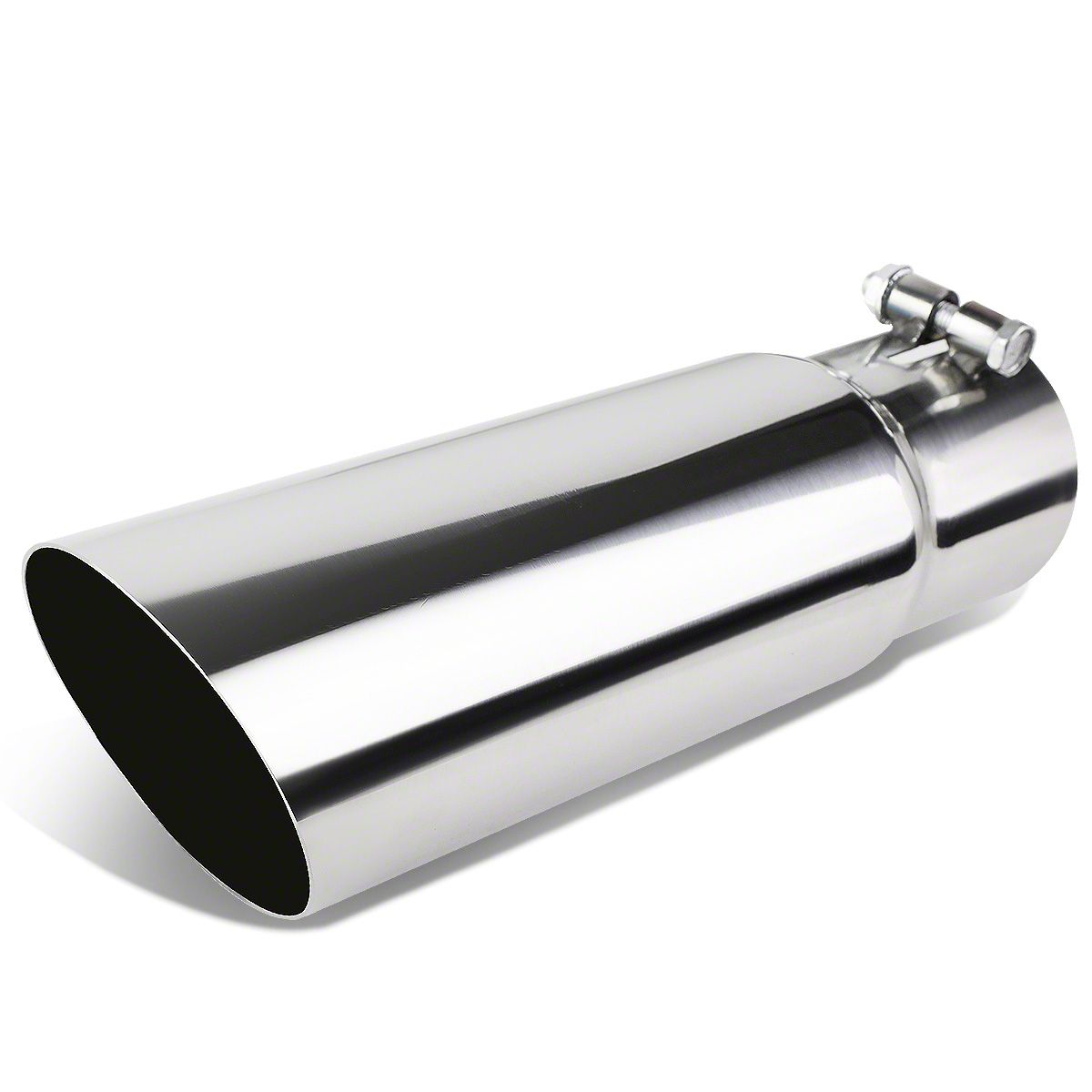 Premium Exhaust Finish. The Angled Cut Round Exhaust Tip; 3.50-Inch; Polished enhances the appearance of your vehicle's exhaust system by providing a sleek, polished outlet for exhaust gases. It serves as an aesthetic upgrade while completing the look of your existing or performance exhaust setup.