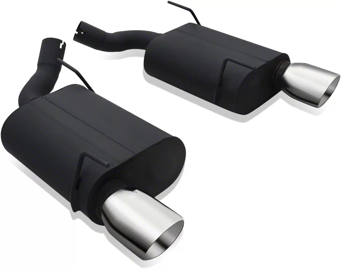 Strong Aggressive Sounding. Rock a tougher look in your Mustang and improve system flow with this Axle-Back Exhaust with Polished Tips. Sporting a bold structure made from stainless steel, it features a strong composition that can handle damage as well as withstand the heat and stress from your daily driving operations, while retaining a bright premium look.