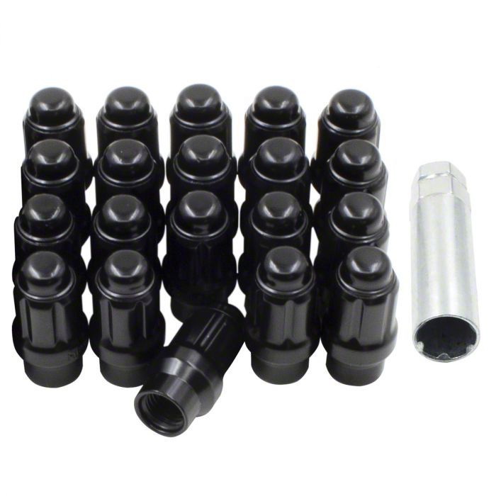 Application. The Black Chrome ET Bulge Acorn Lug Nut Kit; 1/2-Inch x 20; Set of 20 fits 1979-2014 Mustang models.
