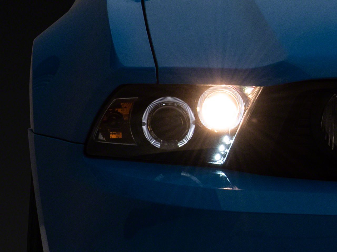 Application. The Black Smoked Dual Halo Projector Headlights are designed to be a direct fit for all 2010-2012 Ford Mustang with Halogen Headlights.
