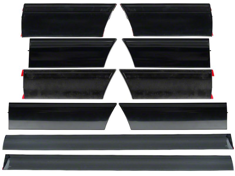 10 Piece Kit. This LX Mustang side belt line body molding kit includes (2) Front Fender Moldings, (2) Rear Fender Moldings, (2) Door Moldings, (2) Front Quarter Moldings and (2) Rear Quarter Moldings.