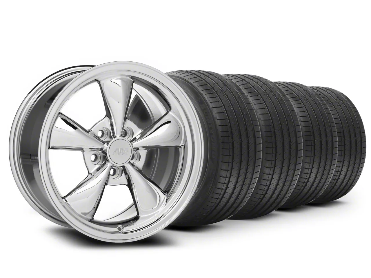 Chrome Bullitt Wheel. The Bullitt Style Wheel features a retro convex five spoke design with a stepped lip for classic good looks. This Wheel is completed in a high quality chrome finish that is accomplished in a three step plating process. The first layer of plating is copper which adheres to the wheel and creates a smooth foundation. The second is nickel, providing hardness and durability. The final layer is chrome, which creates a bright cosmetic finish.