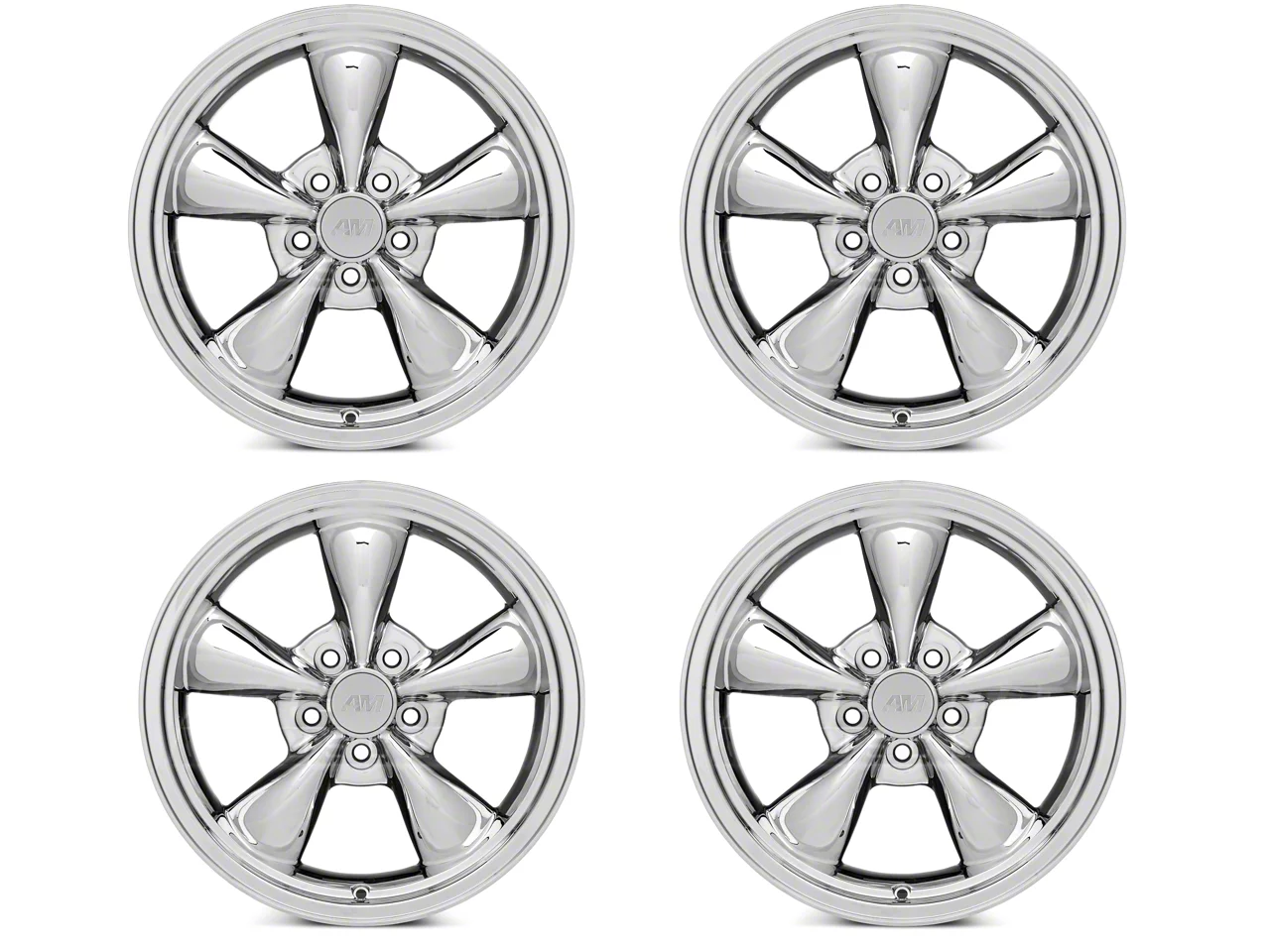 American Muscle Wheels Bullitt Chrome 4-Wheel Kit; 17x9 showcases an exquisite blend of elegance and charisma, perfect for any vehicle aiming for that standout appearance. With its unique design, it not only amplifies the aesthetic appeal of your ride but also complements various vehicle styles. This wheel, stemming from the legacy of American Muscle Wheels, embodies a premium look that's hard to resist.