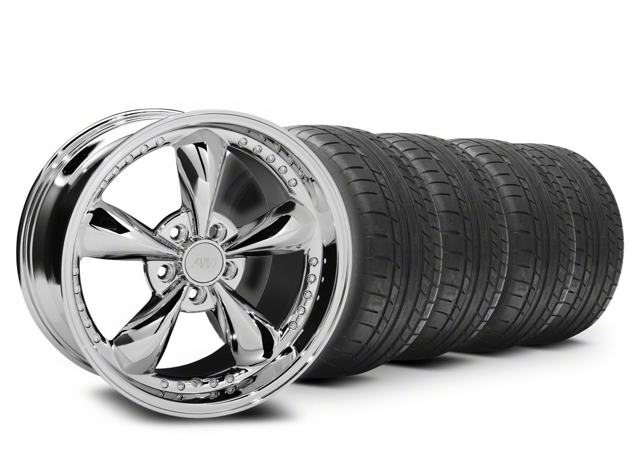 Application. This Bullitt Motorsport Chrome; 18x9 and Mickey Thompson Street Comp; Set of 4 is designed to fit 2005-2009 Ford Mustang GT, V6 models.