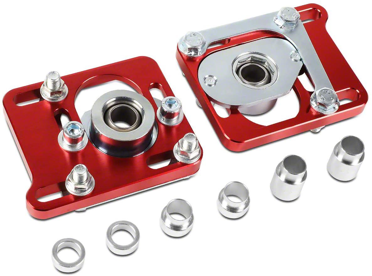 Low Stance Assistance. Getting the low stance you’ve always wanted requires installing camber/caster adjustment plates as your 94-04 Mustang did not come with provisions for adjustments. The Camber Caster Plates (Red) will help you maximize your lowered vehicle as this pair of adjustment plates will adjust the lowered suspension to factory specifications.