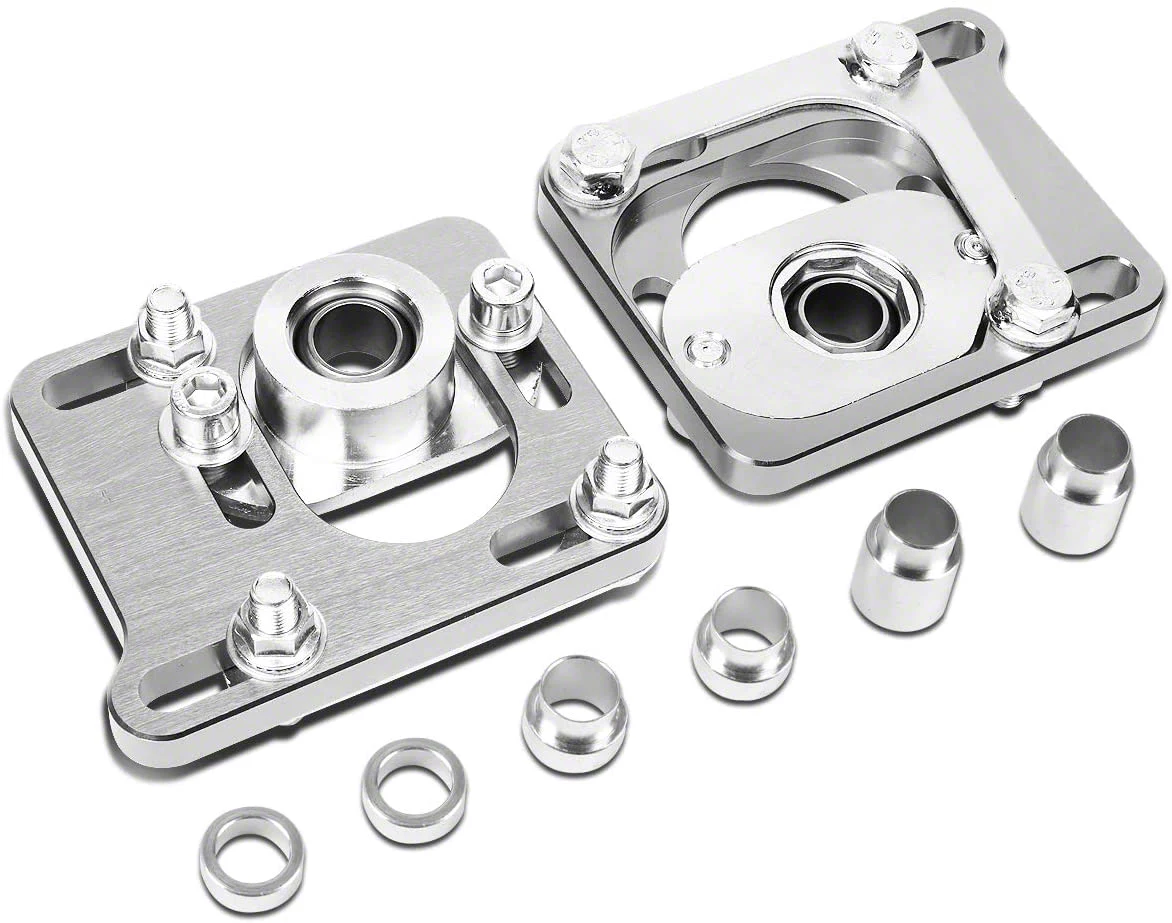 Made for Your Mustang. If you own a ‘94-‘04 Mustang and you’re installing a set of lowering springs or coil over, it is recommended that you also install a set of Caster/Camber Plates. For a quality set that is compatible with your Mustang, look no further than the Camber Caster Plates (Silver). This pair of Camber/Caster Adjustment Plates will adjust the lowered suspension to factory specifications so you can get the most out of your lowered vehicle.
