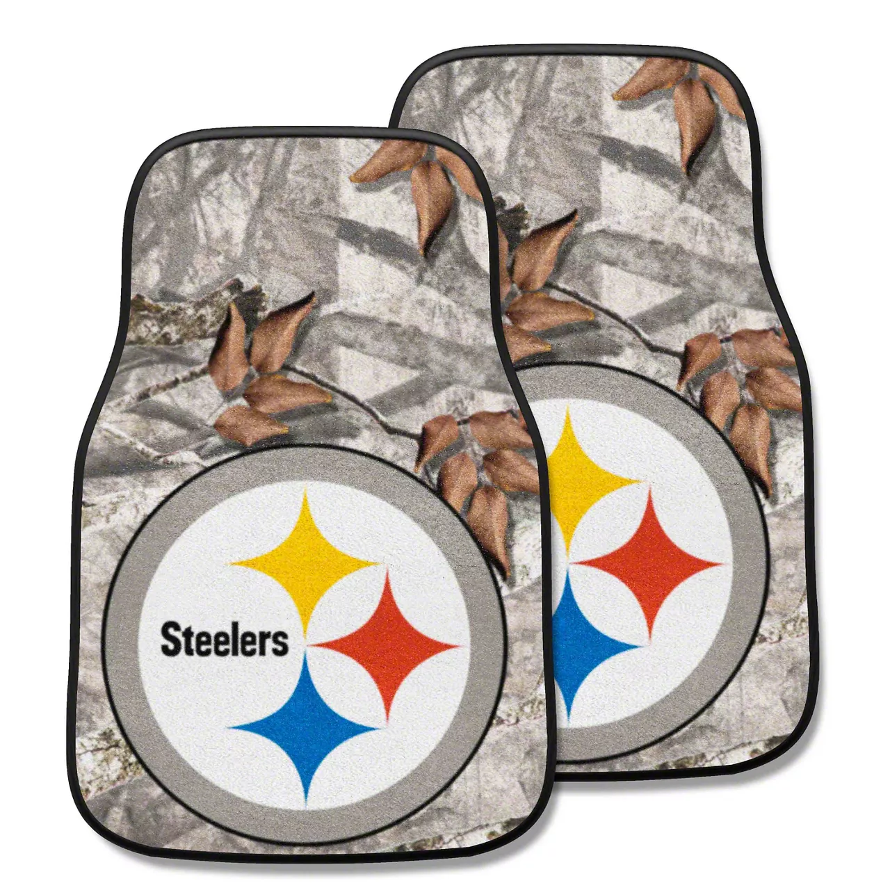 Carpet Front Floor Mats with Pittsburgh Steelers Logo; Camo (Universal; Some Adaptation May Be Required)