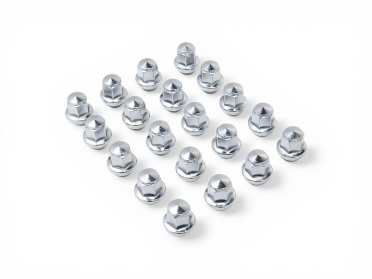Looks and Performance. Upgrade your vehicle's lug nuts with our Chrome OEM Style Lug Nuts (Set of 20). These lug nuts are designed to provide a perfect fit and a secure hold. Measuring at 13/16 inches, these lug nuts feature a Conical Taper Seat with a 60-degree angle, ensuring a snug and reliable fit on your wheel studs. Their solid single-piece design offers exceptional strength and durability. They are resistant to swelling or delaminating even after exposure to moisture and harsh conditions.