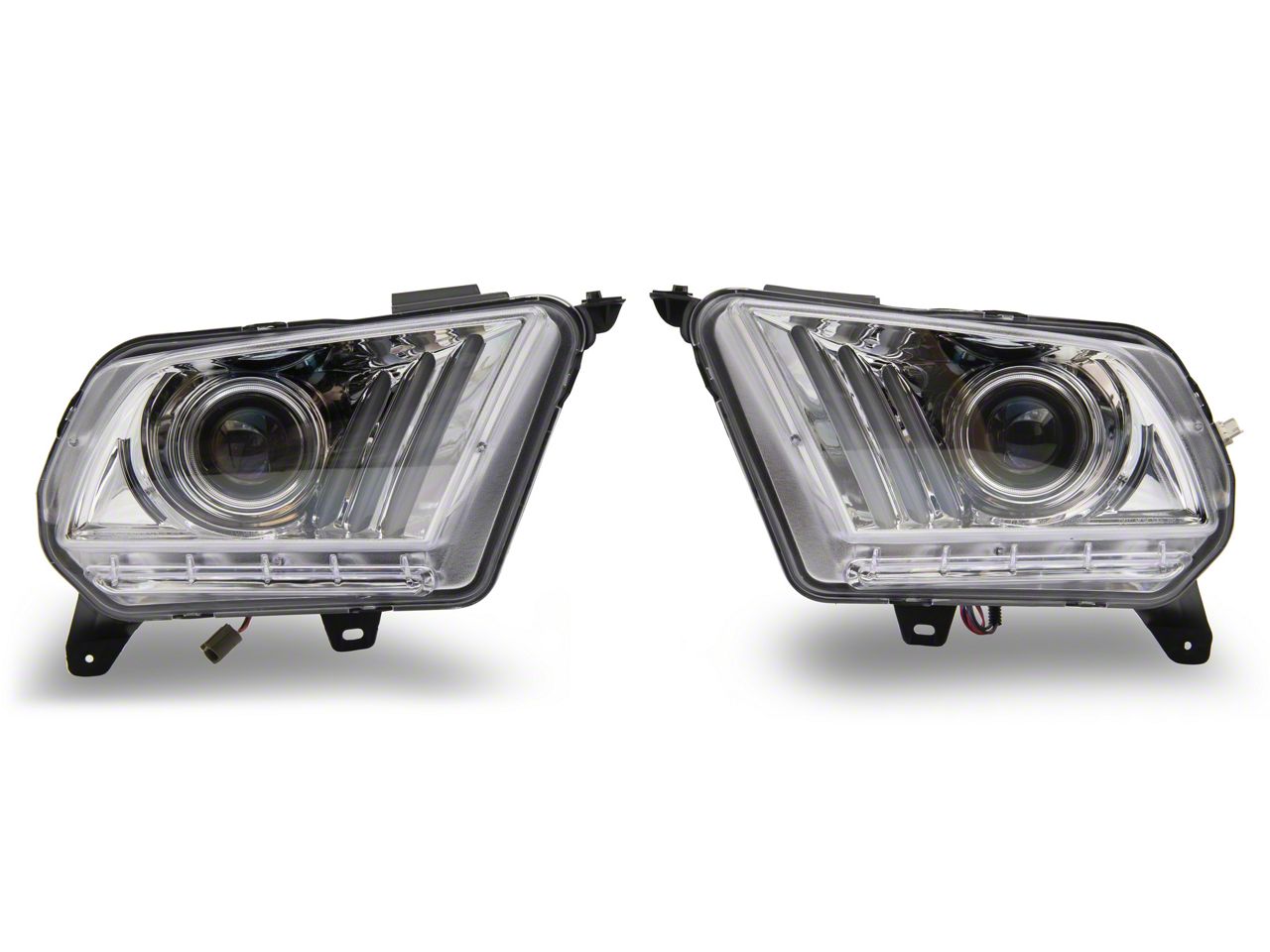 Application. These Chrome Sequential Projector Headlights are created to fit 2010-2012 Ford Mustang with Halogen Headlights.