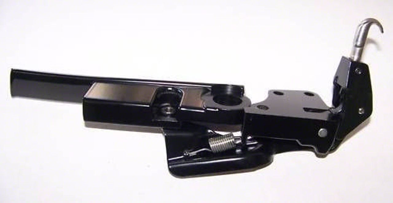Construction and Appearance. Crafted in the USA, this latch assembly includes a chrome hook and handle for a classic and durable finish. It comes complete with two plastic bushings already installed to guarantee smooth movement and long-lasting operation. The materials used provide strength and corrosion resistance suitable for convertible top applications.