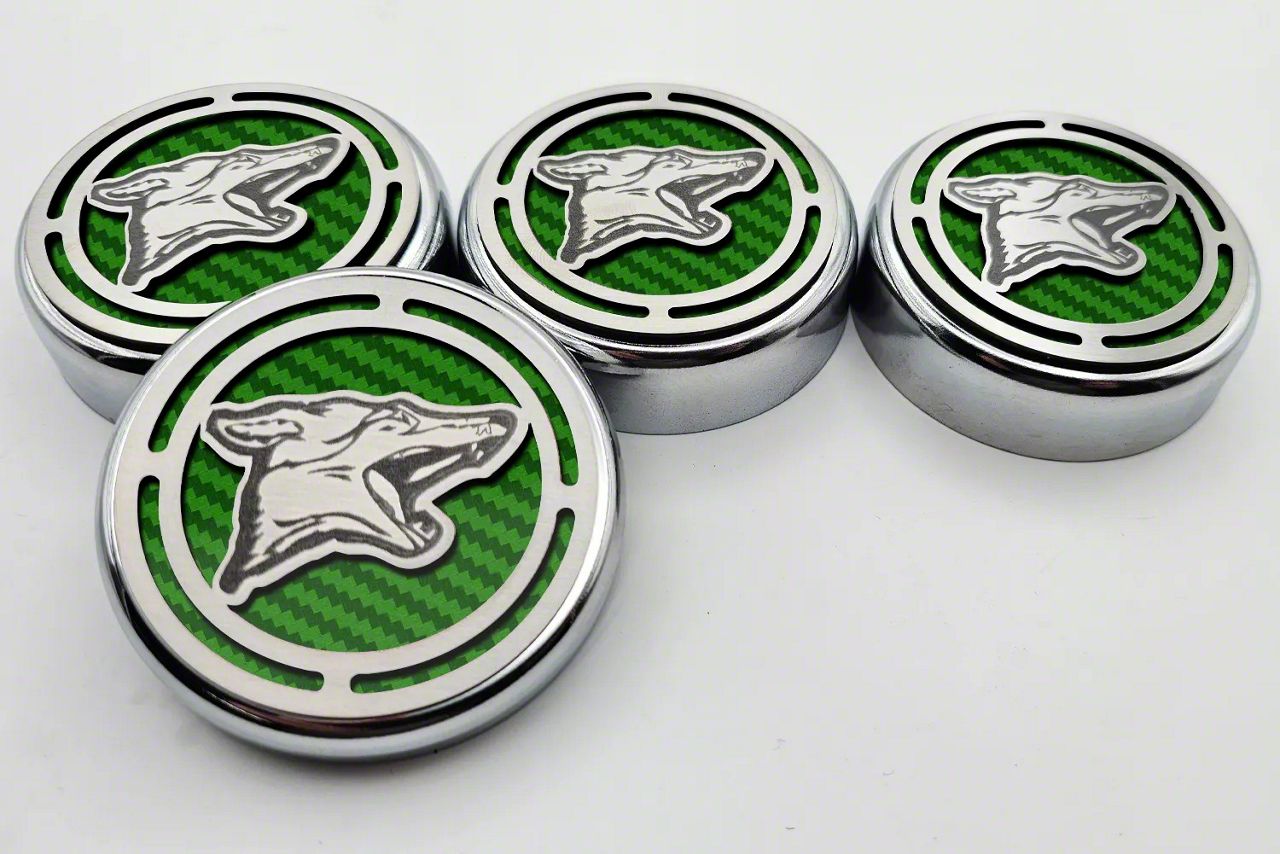 Coyote Series Fluid Cap Covers; Green Carbon Fiber (15-26 Mustang w/ Automatic Transmission)Find parts that fit my vehicle