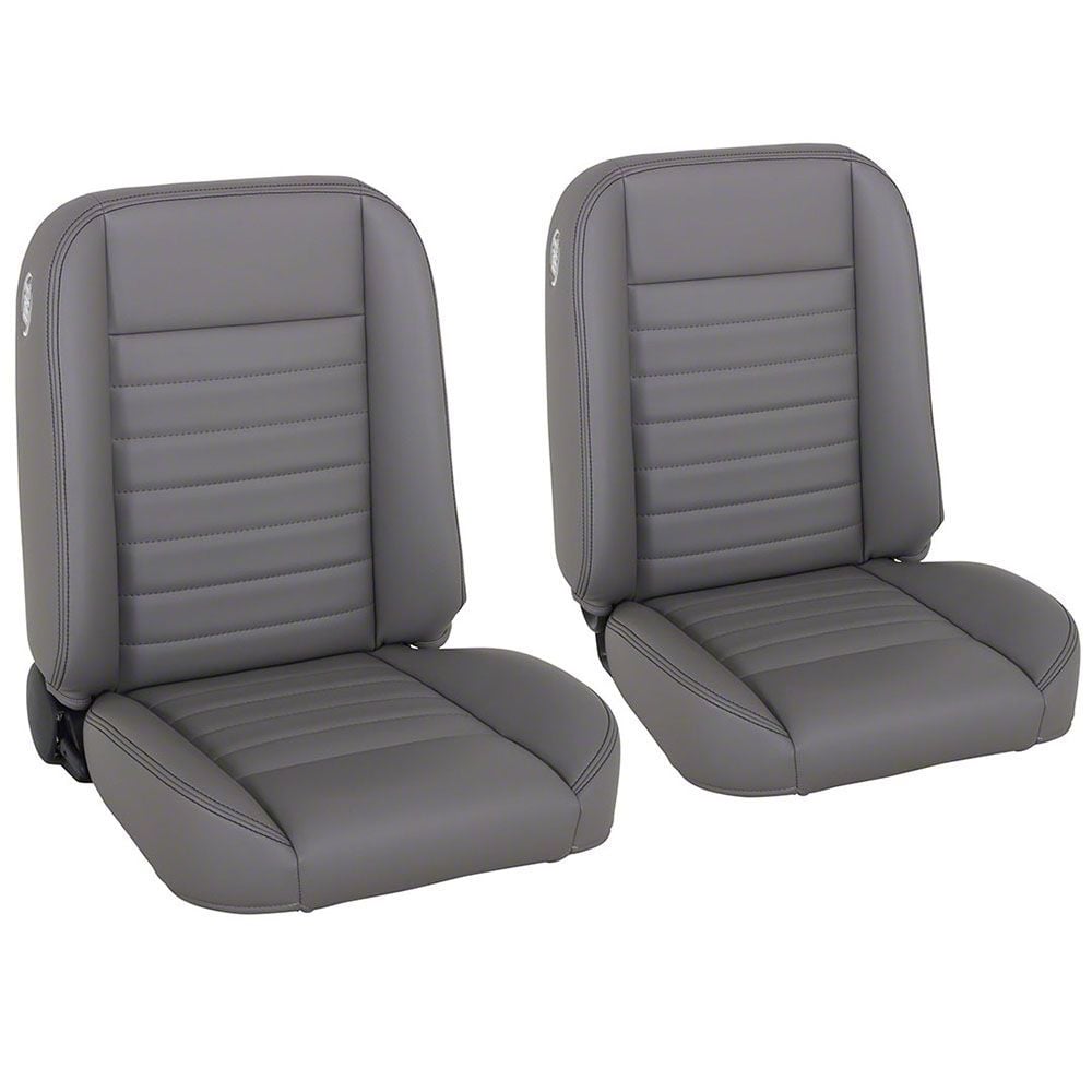 AmericanMuscle no longer carries the Cruiser Collection Classic Bucket Seats with Seat Mounting Brackets; Medium Earth Grey Vinyl with Black Stitching (99-04 Mustang). Please check out 1979-1993 Foxbody Mustang Interior Styling for an updated selection.
