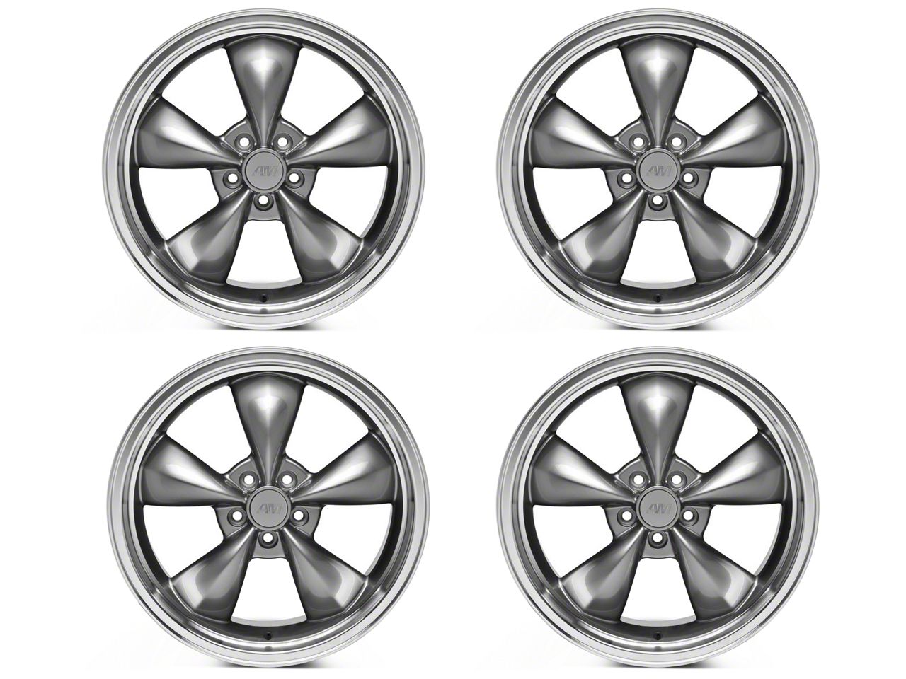 American Muscle Wheels Deep Dish Bullitt Anthracite 4-Wheel Kit; 20x8.5 showcases an exquisite blend of elegance and charisma, perfect for any vehicle aiming for that standout appearance. With its unique design, it not only amplifies the aesthetic appeal of your ride but also complements various vehicle styles. This wheel, stemming from the legacy of American Muscle Wheels, embodies a premium look that's hard to resist.