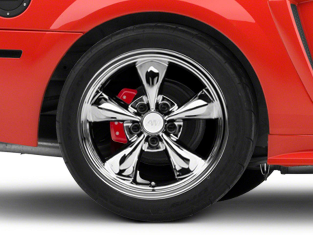 Application. This American Muscle Wheels Deep Dish Bullitt Chrome Wheel; Rear Only; 17x10.5 with a backspace of 6.853 Inch, 174.1mm and bolt pattern of 5 x 114.3mm (5 x 4.5-Inch) ensures impeccable alignment and unmatched driving stability. Specifically designed for 1999-2004 Mustang models, each wheel is sold individually.
