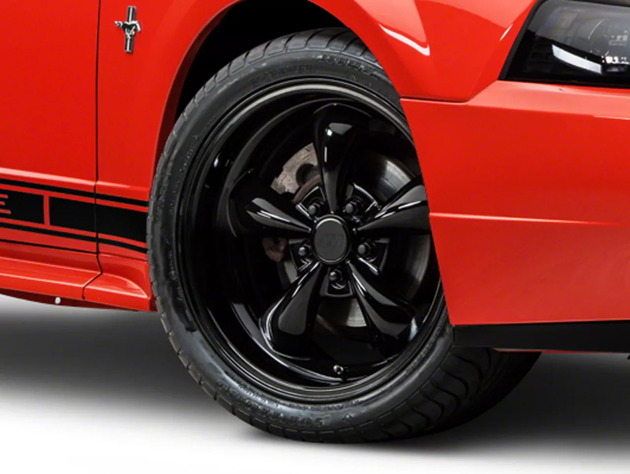 Application. This American Muscle Wheels Deep Dish Bullitt Solid Gloss Black Wheel; 18x9 with a backspace of 6.182 Inch, 157.1mm and bolt pattern of 5 x 114.3mm (5 x 4.5-Inch) ensures impeccable alignment and unmatched driving stability. Specifically designed for 1999-2004 Mustang models, each wheel is sold individually.