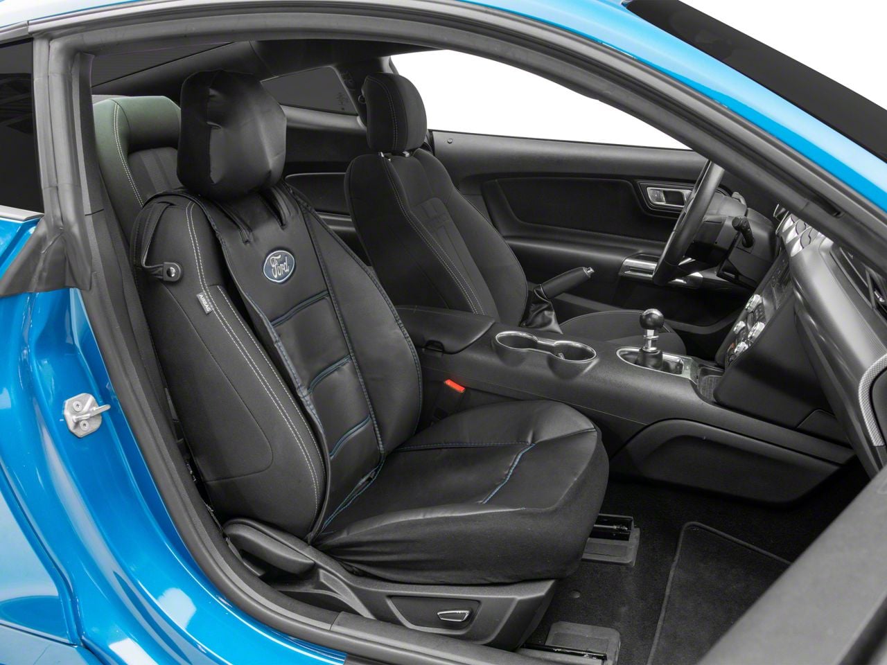 Premium Quality Style. Tired of your old, stained seat covers? Introducing the Deluxe Sideless Seat Cover with Ford Logo; Black. This cover is made from polyvinyl, so it's easy to clean and features a high-contrast Ford logo that will really stand out. Plus, the patent-pending 3-piece design makes installation a breeze.