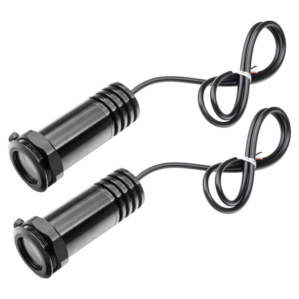 Description. No more guessing if you're parked over a puddle or not! The New ORACLE LED door Projectors re-define the "puddle light" Vividly Projects your favorite logo on the floor surface when you open your vehicle's door, hooks right up to your door's wiring. Q: What is a light GOBO? A: Its an acronym for "GO Between Optics". It is an image that can be projected when an light source is introduced. In this case the light source is a high powered LED so the image is crisp, the housing is small, and it puts out very little heat. This product is sure to get some attention with added safety. Package includes: 2 LED Projectors, 1 Install Tool.Warranty. 1 Year