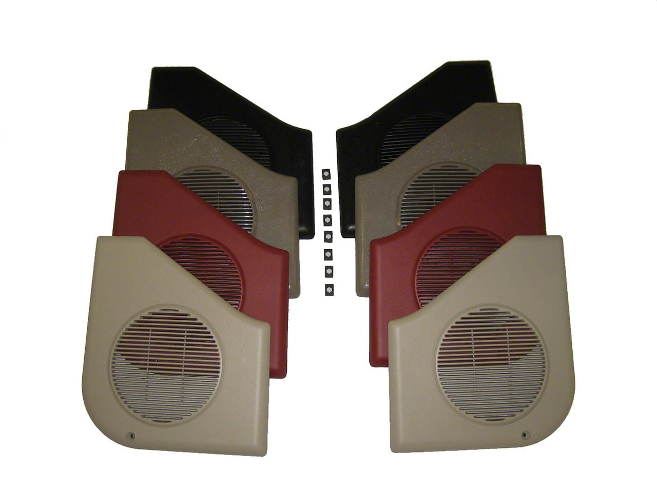 Construction and Appearance. Featuring a leather red finish, these speaker covers are crafted to match original dimensions and contours. The color adds a vibrant and custom look while maintaining the factory-correct fit. Built from durable materials, the covers are made to resist cracking and fading while enhancing the interior’s visual appeal.