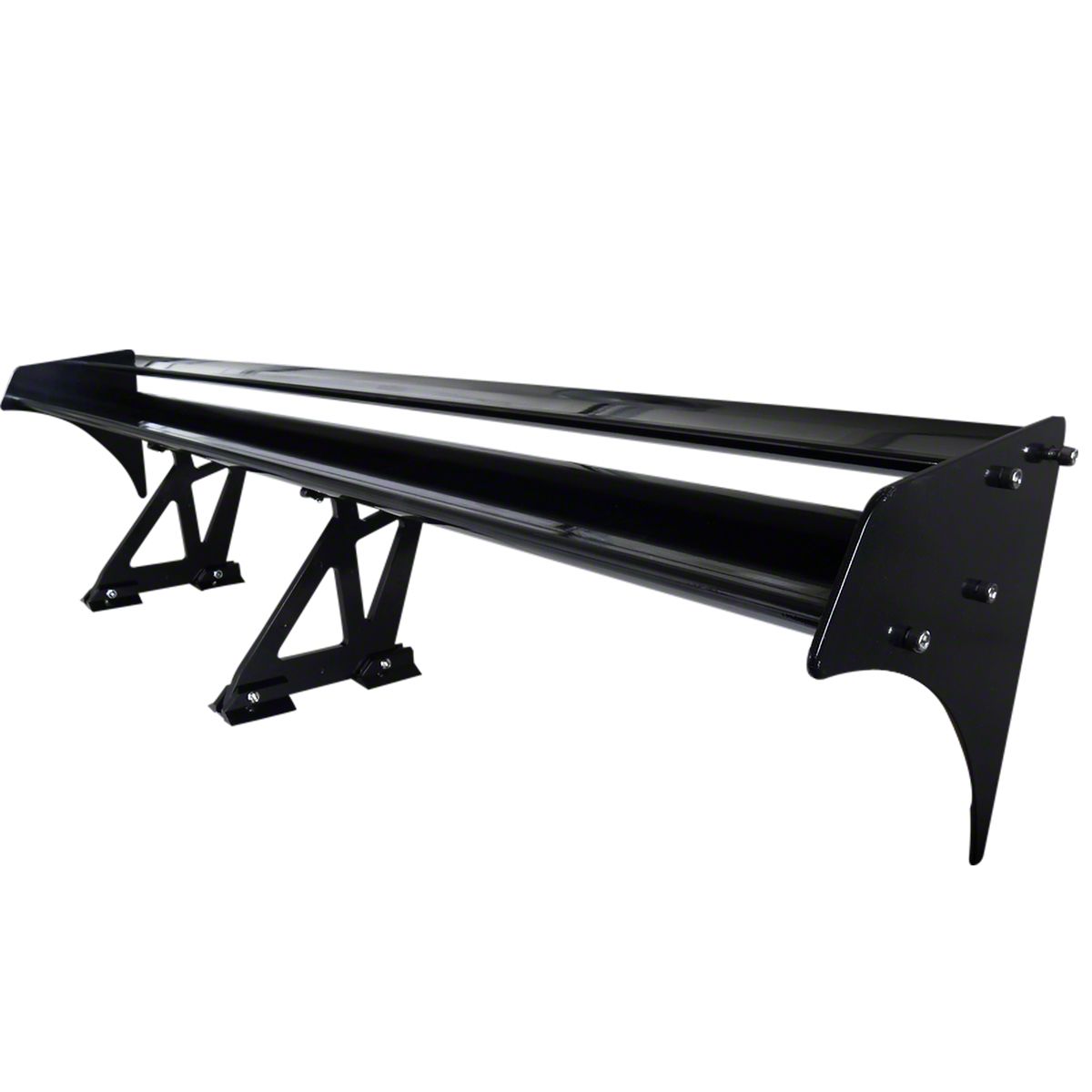 1 piece of black double deck GT wing trunk spoilerMade of high quality C.N.C machine aluminum with black paintedDimension: 52.25" length x 10" width x 10.5" heightDistance between two brackets: 14.5"Comes with brackets and screws for installation
